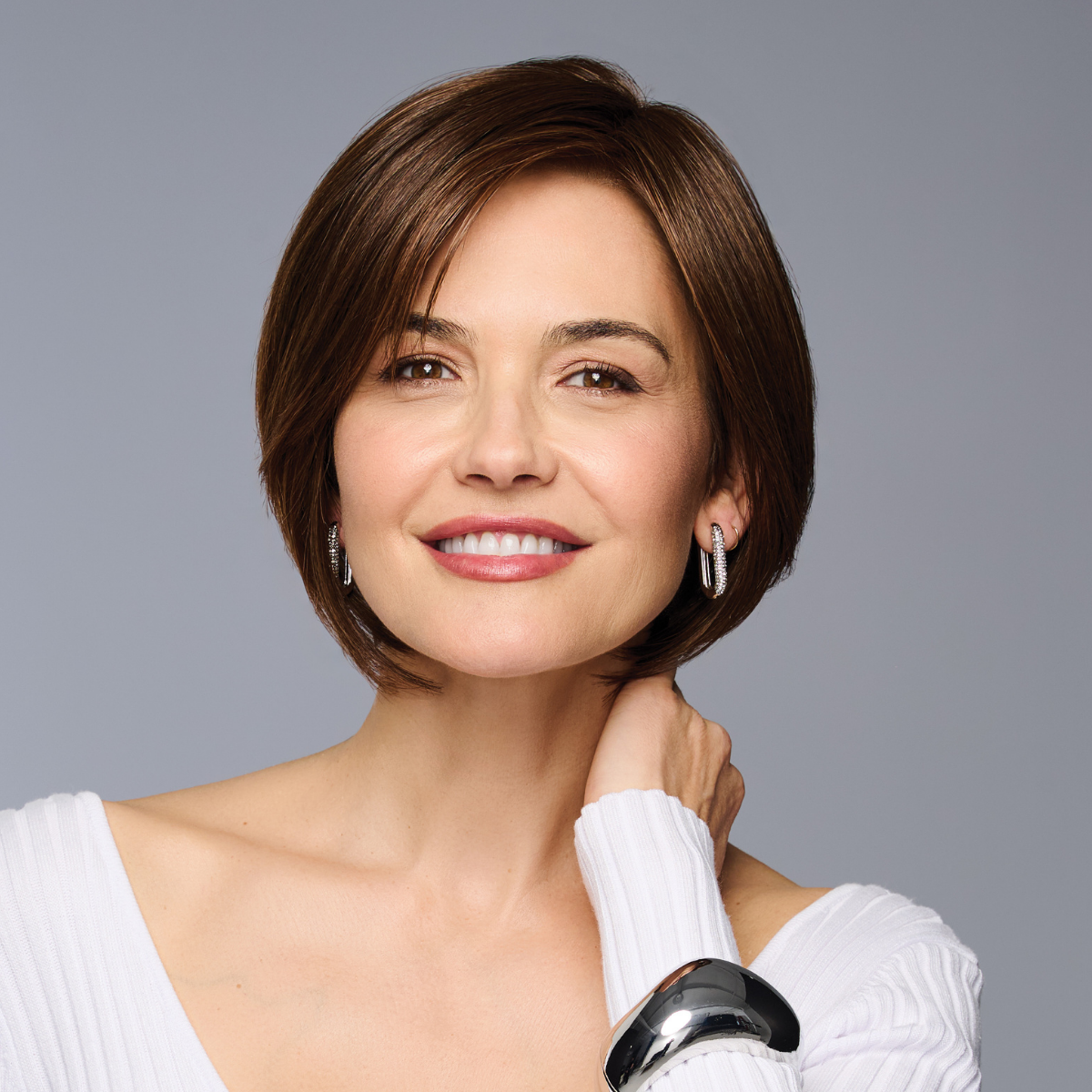 Our bestselling topper now in an 8-inch length. Made with heat-friendly Tru2Life fiber, it has the light density and the natural look you love. With a sheer lace front and monofilament base, you can wear the hair forward or brushed back – and part as you prefer. Blends beautifully with chin-length hair.
