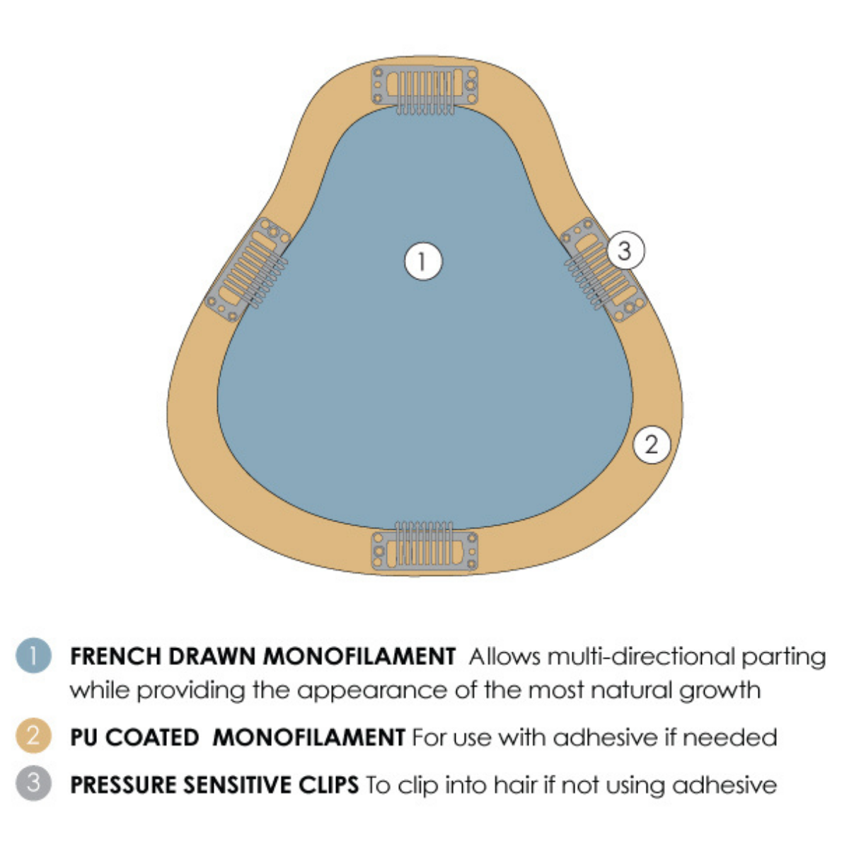 This Remy human hair topper adds instant coverage and volume by clipping in over your part. Crafted using a luxury French knotting technique that hides the knots under a glass silk layer, easiPart French provides an appearance that resembles real scalp. The additional bottom layer of glass silk protects the skin and provides extra comfort for the wearer. Also, easiPart XL French is available in 12" and 18"of length.