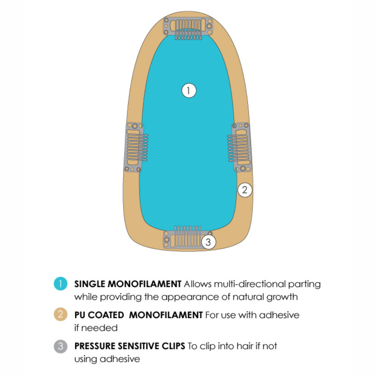 This one-piece volumizer adds instant thickness with naturally stunning remy human hair. It clips in quickly and easily for all-day comfort and can be styled with heat to create any look. Available in 12" as well, with options for both beginning to mid stages of hair loss.