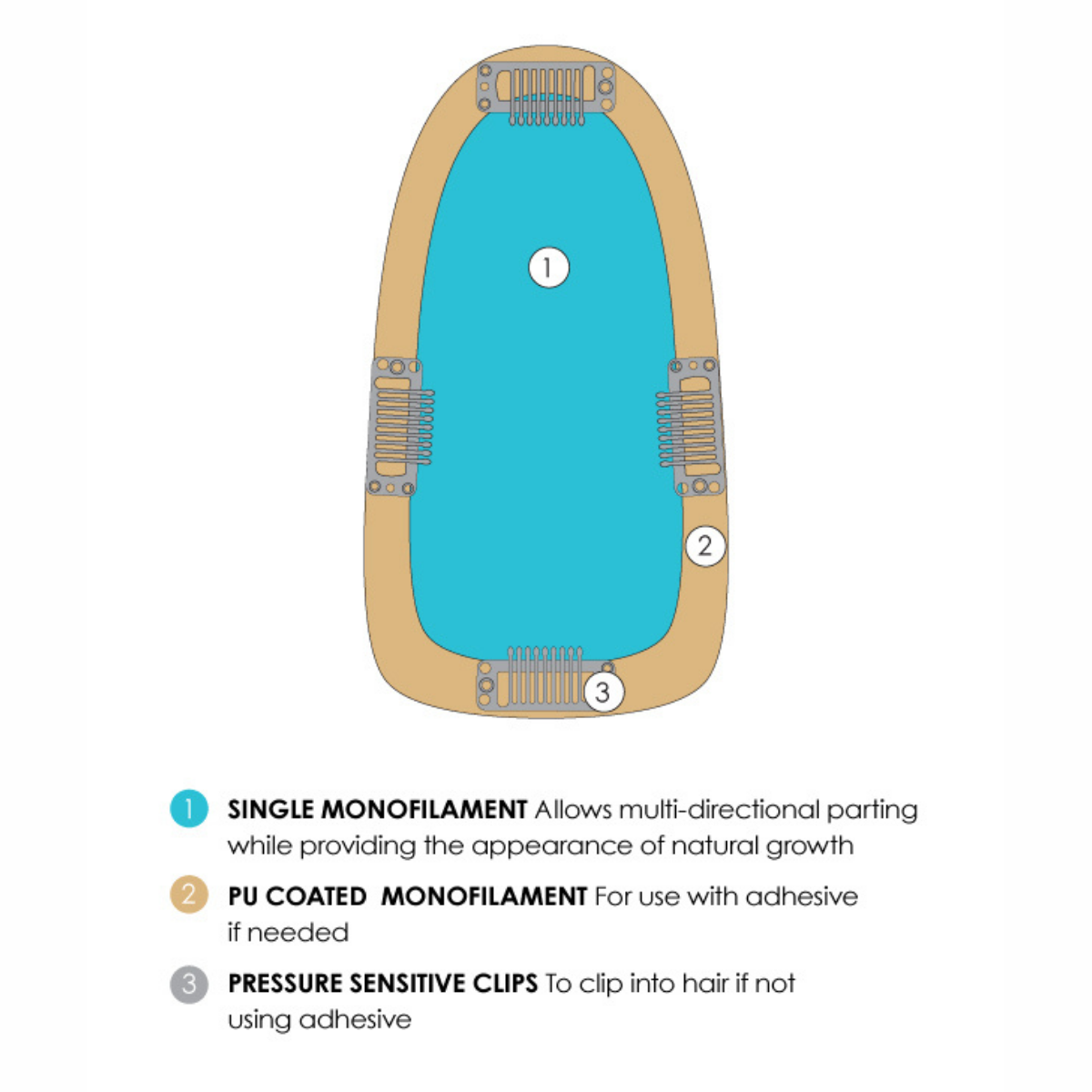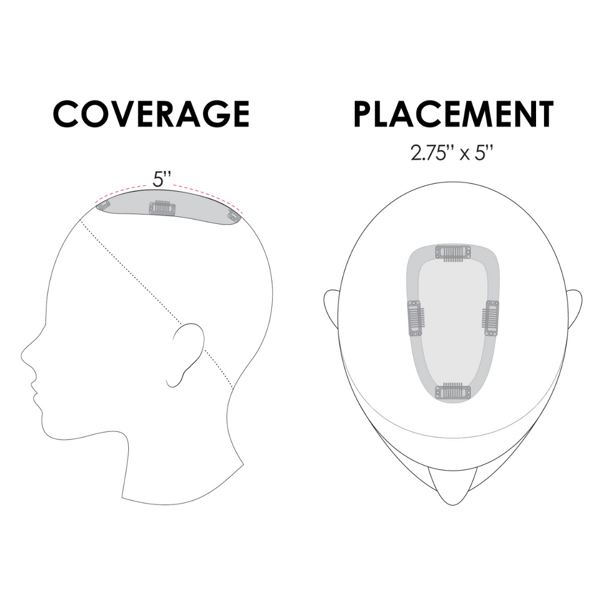This one-piece volumizer adds instant thickness with naturally stunning remy human hair. It clips in quickly and easily for all-day comfort and can be styled with heat to create any look. Available in 8" and 12" as well, with options for both beginning to mid stages of hair loss.
