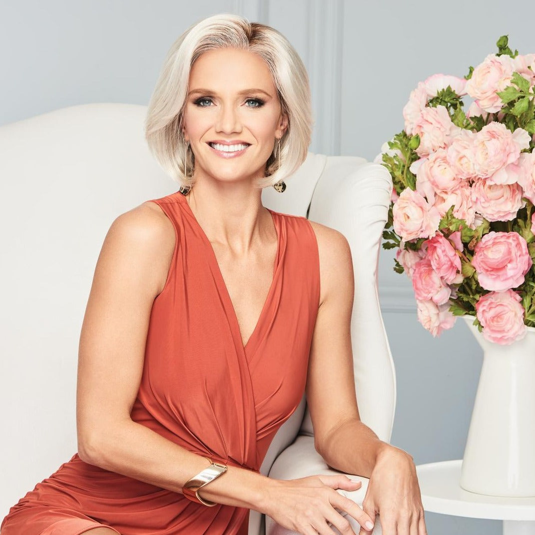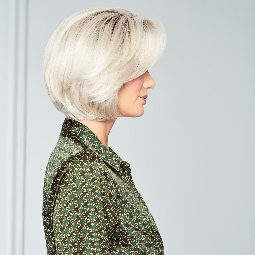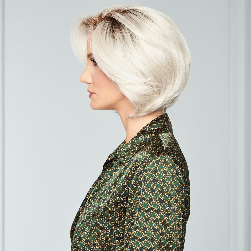 This softly waved chin length cut gives the classic bob a new twist. With a sheer lace front and Hand-tied top for varied styling options, the layered texture throughout allows for natural movement, and the beautifully tapered lengths make this a light, timeless classic.