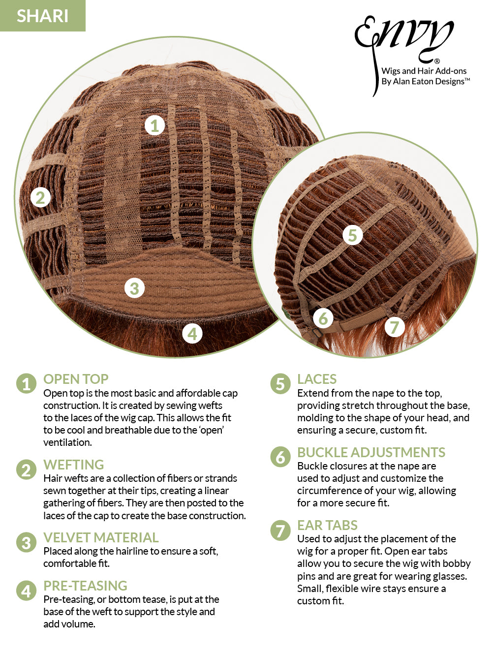 SHARI features ENVY’s breathable and lightweight Open Top construction and is available in 25 vibrant multi-dimensional colorations to fit today’s trends. With long side swept bangs, chic SHARI can be pumped up for more volume or worn sleeker and closer to the head.