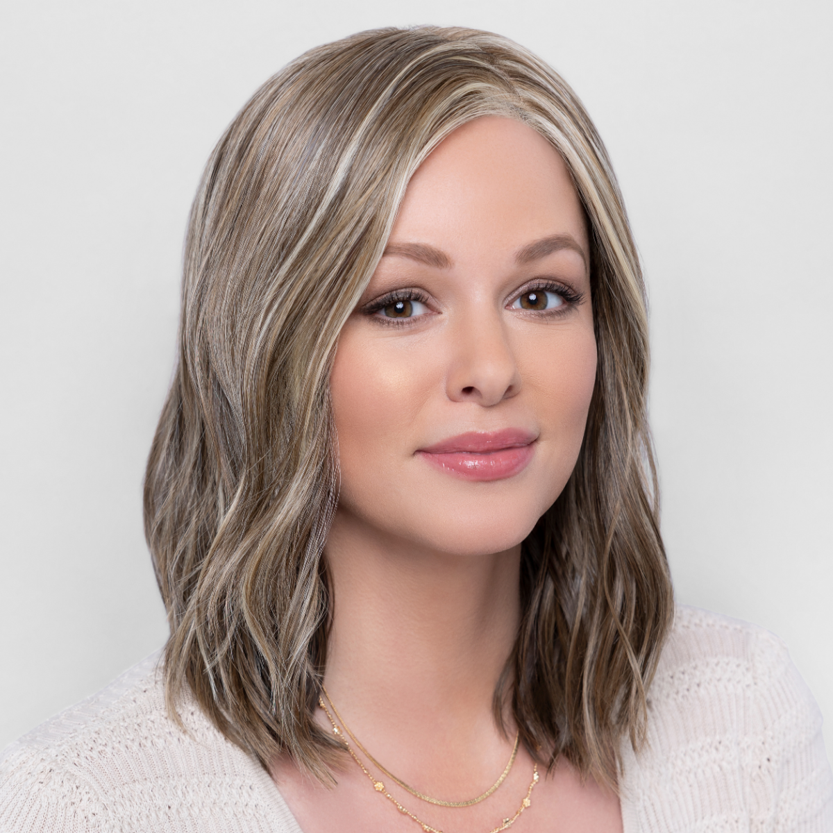 • 12/26GR - Light golden brown with light blonde + gold blonde highlights + medium brown roots