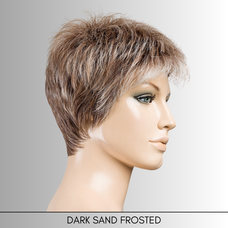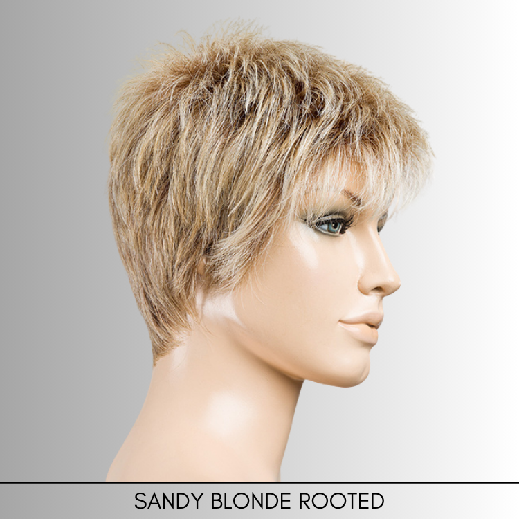Chat by Ellen Wille is a chic pixie cut with soft layers for natural movement and styling versatility. Made with heat-friendly synthetic fiber, this short wig can be worn sleek or textured. The extended lace front creates a seamless hairline, while the wefted cap, cooling ear tabs, and lightweight design ensure breathable, all-day comfort.