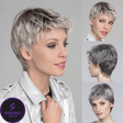 Risk Sensitive II by Ellen Wille is a short cut with textured layers and is made with the most natural, comfortable cap. A partial mono - round point keeps the crown area more natural. The improved lace front is now our unique comfort lace front providing the utmost soft comfort while ensuring a most natural looking hairline. An open wefted cap is made with special comfort material, as is the materials used for the lace front.. perfect for anyone with a sensitive scalp! Adjustable and lightweight. This wig is styled to create a feminine boy cut with versatility. To further personalize, add styling products and wear forward or spiky.