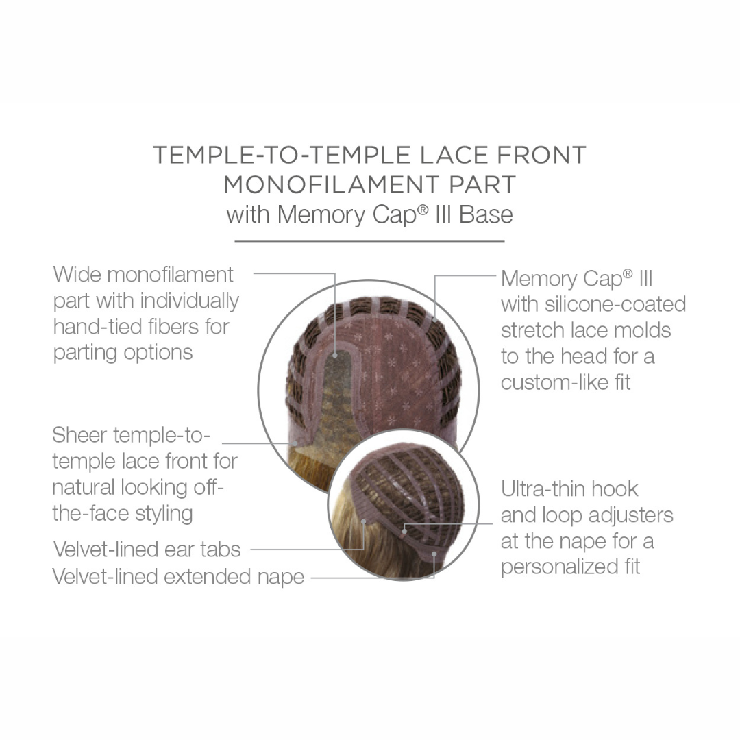 • Memory Cap® III Base with a Monofilament Part, Velvet Lined Ear Tabs, and a Velvet Lined Extended Nape