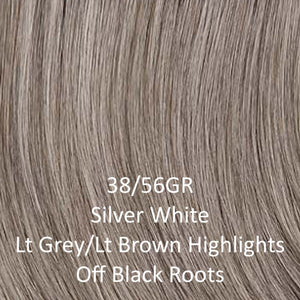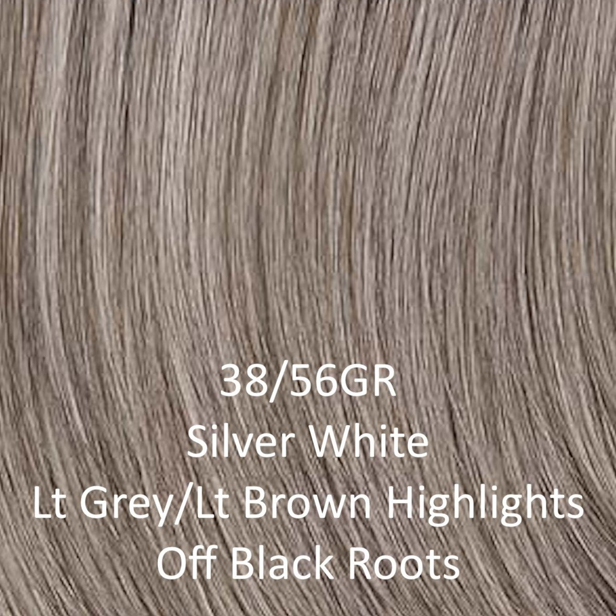 • 38/56GR - Silver white highlighted with light grey and light brown and off black roots
