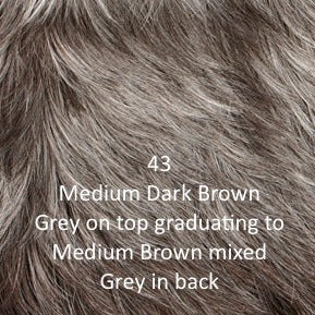 • 43 - Medium dark brown mixed grey on top graduating to dark brown mixed grey in back