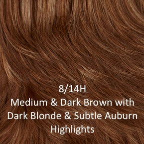 Color Shown: 8/27/33 - Medium brown with gold blonde and strawberry with auburn highlights; 12AH - Golden brown with light auburn highlights