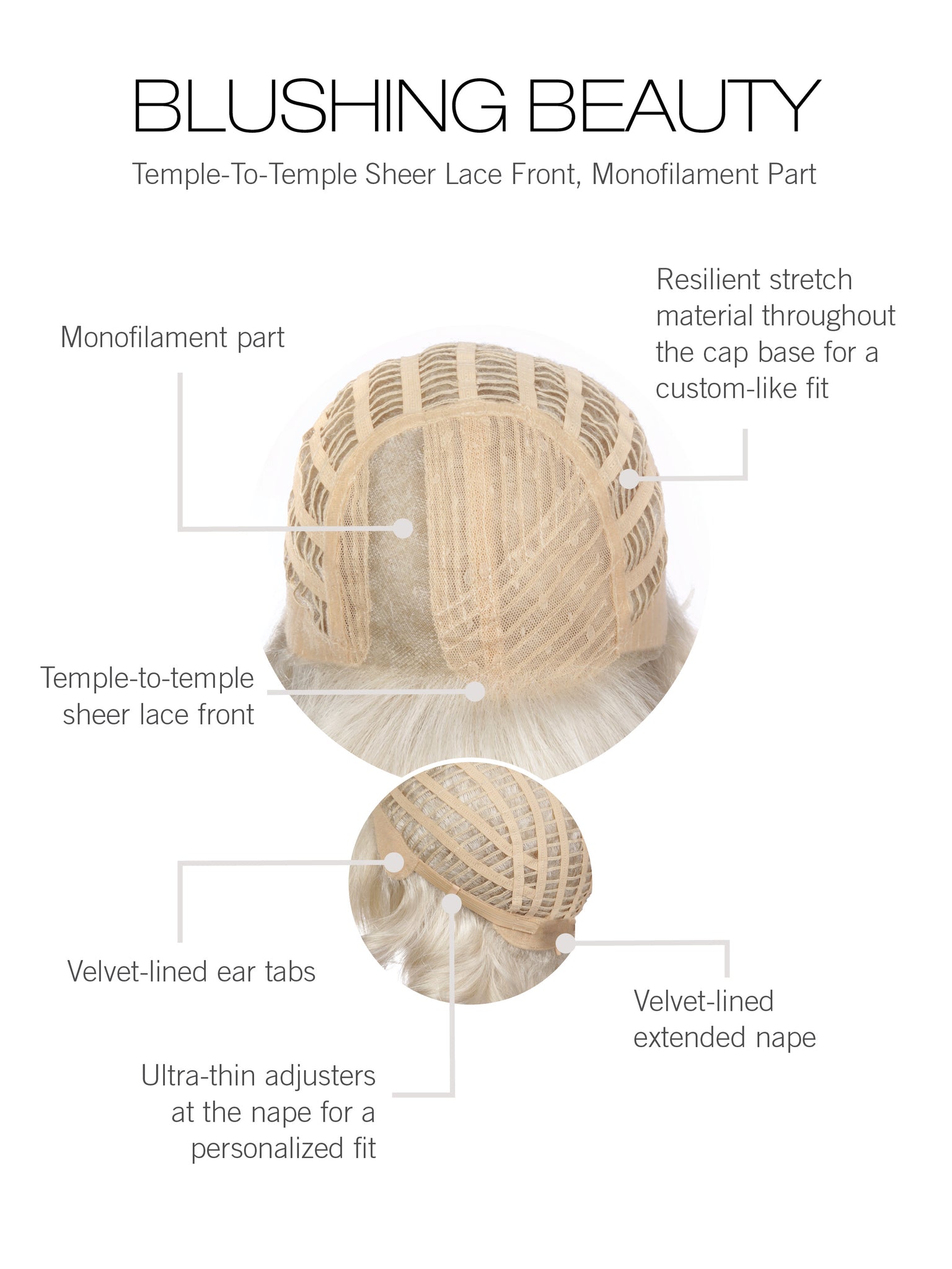 Soft, salon-inspired barrel curls are so flattering – and so easy to make your own! This low-density style is surprisingly versatile. Simply mist to bring out the texture or brush through for a fuller, sophisticated look. The lace front hairline runs from ear to ear and the mono part extends all the way to the crown for a very natural part line and the ability to wear off the face or with a sweeping bang
