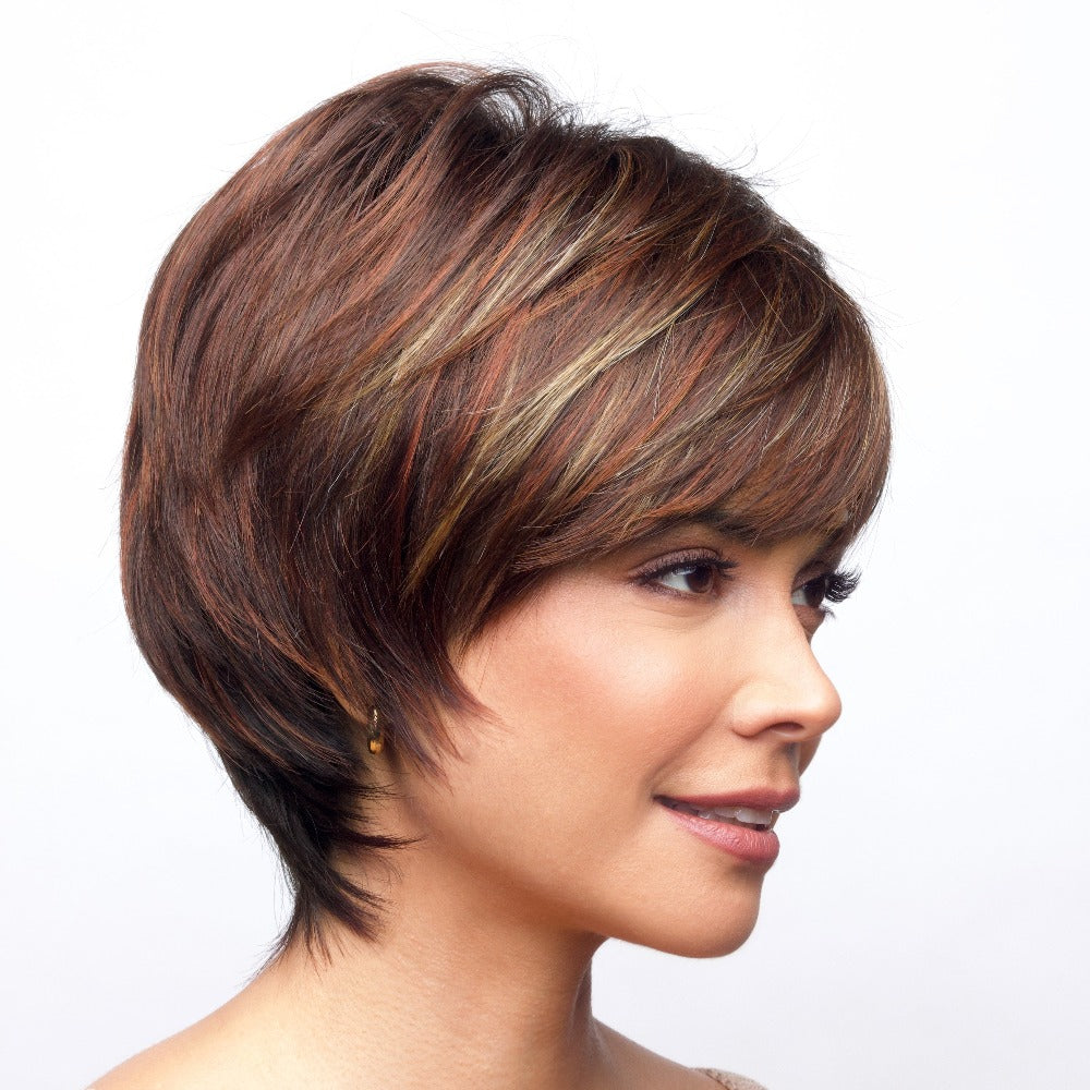 Brett from our Noriko Collection is a short-length synthetic wig. This straight ready-to-wear wig is a simply superb style with layered pixie. If you are looking for a modern everyday look – Brett is the style for you. Brett is machine made with adjustable tabs in the back nape area to allow a more comfortable fit. The result is a comfortable fit with a natural look that is both fashionable and easy to wear.