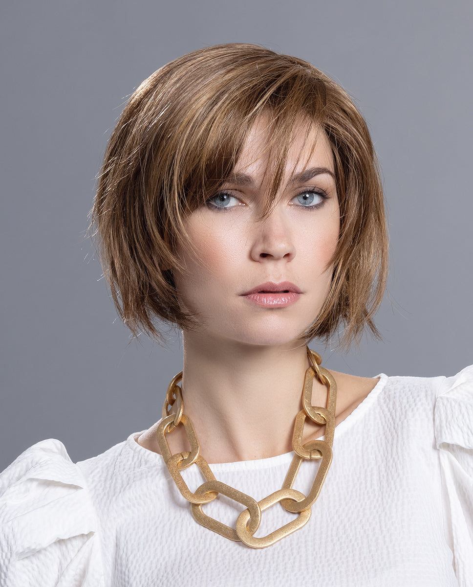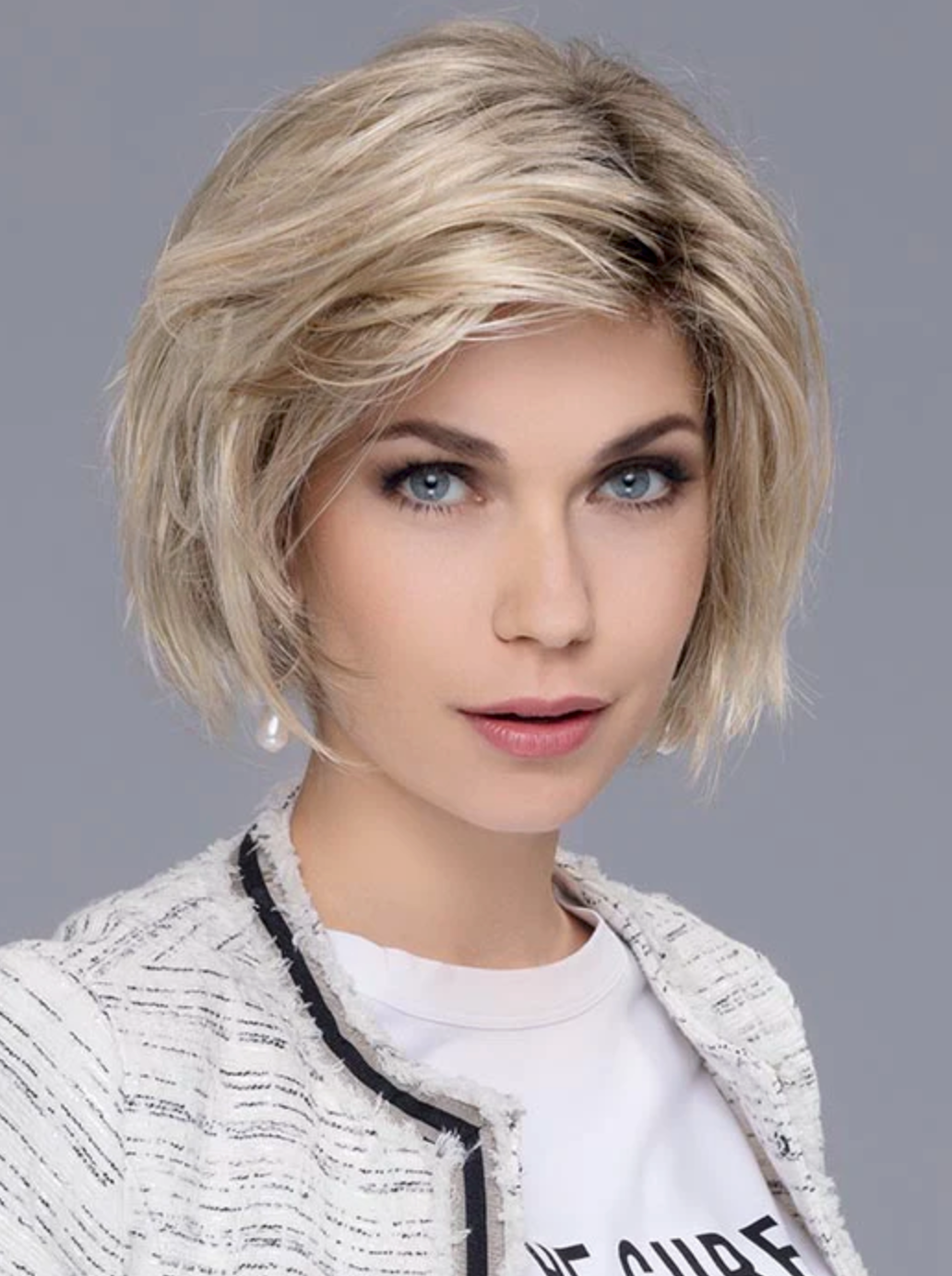 French is from the legendary Changes collection by Ellen Wille. The French style has all the perfect touches to make it the all time perfect bob. With an invisible lace front hairline and a monofilament part, you have a natural look as if it's your own hair coming out in that area. With Ellen's specially designed synthetic fiber the hair mimics the natural movement of real hair. The overall length sits off the neck line, with slightly textured ends that add a modern twist to the average bob. Fun flirty and takes the classic bob to another level. The new bob with French Flair.