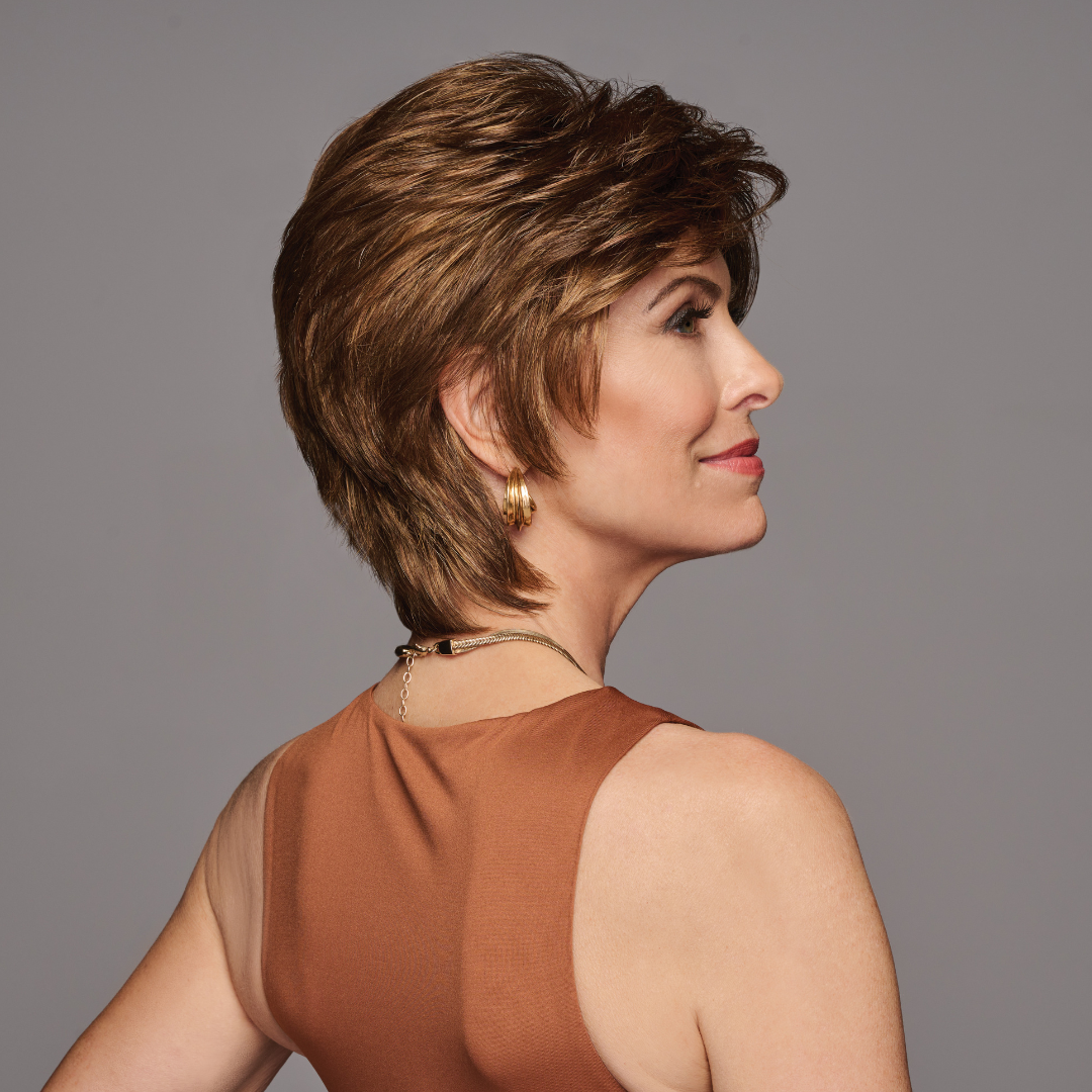 Look like you’ve just left the salon! This lightweight yet voluminous style is just like a fresh blowout with its round-brushed, softly waved layers. The lace front allows the style to be worn off the face, while longer tapered lengths at the nape create an elegant finish.