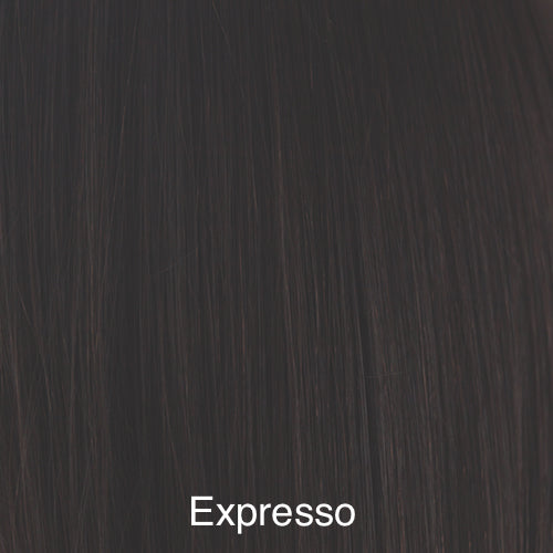 Fringe Flair from our Amore collection is a synthetic hair enhancer. This straight clip-in bang allows you to update your hair style with our sweeping asymmetrical “fringe” without cutting your hair. Update your everyday look without the commitment of cutting your own hair and adding a little fringe bang to it. Its Monofilament construction has 3 toupee clips and will give you a light, breathable base and provides the ultimate versatility and comfort.