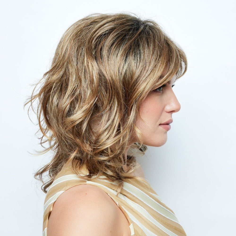 Jan from The Orchid Collection is a medium-length synthetic wig. This wavy ready-to-wear wig is a fashionable and flattering choice. This beautifully cut style is versatile and looks great on individuals of any age group. Its textured layers add dimension and movement to your look, creating a trendy and dynamic hairstyle. Whether you’re looking for a casual everyday style or a chic look for a special occasion, Jan is one to watch. Jan is machine-made with adjustable tabs in the back-nape area to allow a more comfortable fit. The result is a comfortable fit with a natural look that is both fun and stylish.