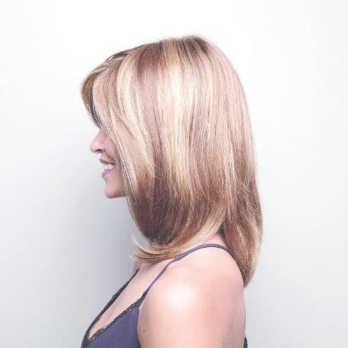 Kenzie from our Noriko Collection is a mid-length synthetic wig. This straight ready-to-wear wig is a stylish cut featuring long, textured layers on the back and sides sweeping bangs. A feathered above-the-shoulder hairstyle is one that will never lose its popularity. Kenzie is Monofilament top with adjustable tabs in the back nape area to allow a more comfortable fit. The Monofilament top gives you a light breathable base and a more realistic appearance to create a natural illusion which allows you to change the direction of the part on the wig. It provides the ultimate versatility and comfort.
