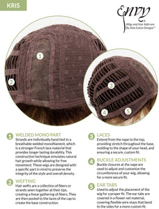 Kris by Envy offers a hand tied mono part construction for the most natural in realistic styling. Kris has been designed to offer chic pixie styling at its best. The long bangs are side swept offering a flirty retro feel while being manageable and sophisticate. Perfect for all ages and suitable for the novice wig wearer with its ease of styling. Kris is available in 25 vibrant multi-dimensional colorations to fit the trends of today.