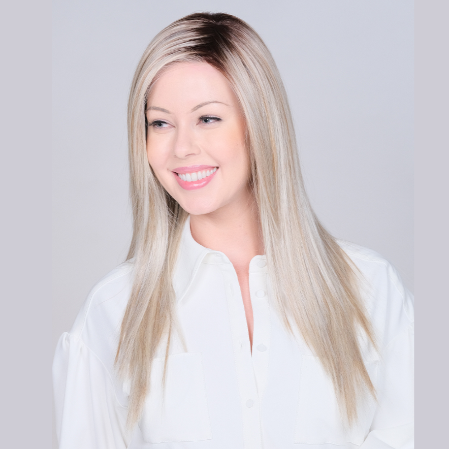 The luxurious 23" version of Kushikamana 18. "Kushikamana" means "connected" in Swahili.  Kushikamana 23 is an exceptionally straight, most realistic flat-iron pressed look. Temple-to-temple hand-tied lace front, open cap, wide and extended partial mono part delivers natural hairline and comfort. Ready to wear, since they come all pre-styled with the luxurious, silky, and modern texture.