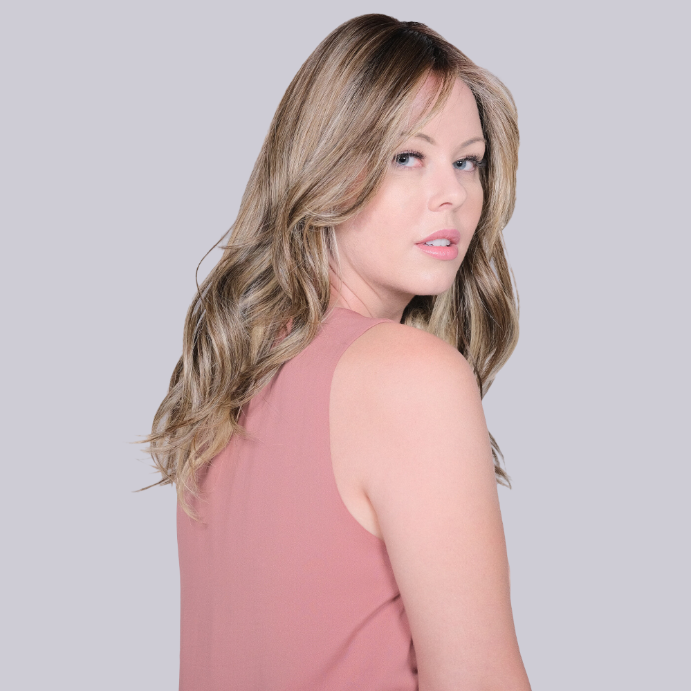 Luxurious hand pulled strand-by-strand full monofilament 19” long hairpiece that gives the effect of a full cap wig. Enjoy the comfort and lightweight feel of a deluxe full lace front hairpiece. Added extra 6 layers of hair in the back of the piece gives just a little more volume and coverage without wearing a full wig. Even if you have a perfect amount of hair, this piece provides just-left-the-salon look in an instant without blow drying or styling. Built-in 4 snap clips make it easy to secure. Now with the new 16” length and original curl pattern along with our first “layered long curtain bang” style, you have more freedom to create variety of styles with BelleTress original lace Front Mono Top Peerless 19. Perfect for adding the volume to the crown and natural texture to frame the face.