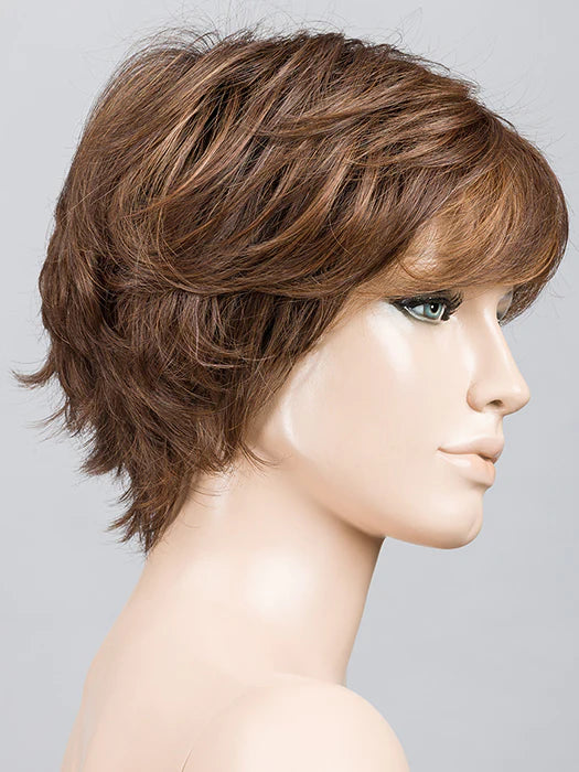 The Relax Large wig is a stylish and trendy wig made for large wig sizes designed with short shaggy layers that offer a fun and playful look. It is made from heat-friendly synthetic fiber that can be styled with heat tools like curling irons or straighteners to create different looks. The wig features a lace front that gives a natural-looking hairline and a mono crown that creates the illusion of natural hair growth at the crown area. The lace front also allows for easy and comfortable wearing, while the mono crown ensures that the wig looks realistic from any angle. The Relax wig is available in a range of stunning color options to suit any skin tone and personal style. Whether you're looking for a bold and bright color or a more natural shade, there is a color option to suit your needs. The feathered look of the wig gives it a light and airy feel, making it perfect for everyday wear or special occasions.