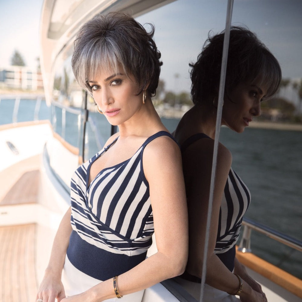 Sandie from our Noriko Collection is a short-length synthetic wig. This curly ready-to-wear wig is a textured bob with a tousled finish. Sandie is machine made with adjustable tabs in the back nape area to allow a more comfortable fit. The result is a comfortable fit with a natural look that is both fashionable and easy to wear.