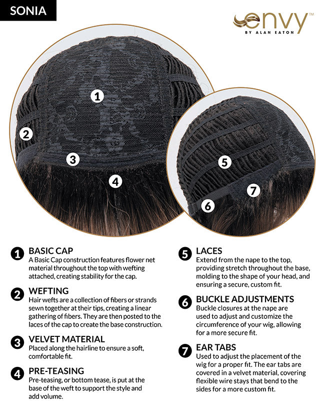 A better-than-good hair day is yours with the bouncy, shoulder-length layers and side-swept bangs of SONIA by ENVY. Featuring whisper-soft netting dyed a complementary shade to ensure complete coverage; and a breathable Open Top that allows air to circulate freely, SONIA promises you’ll look AND feel fantastic.