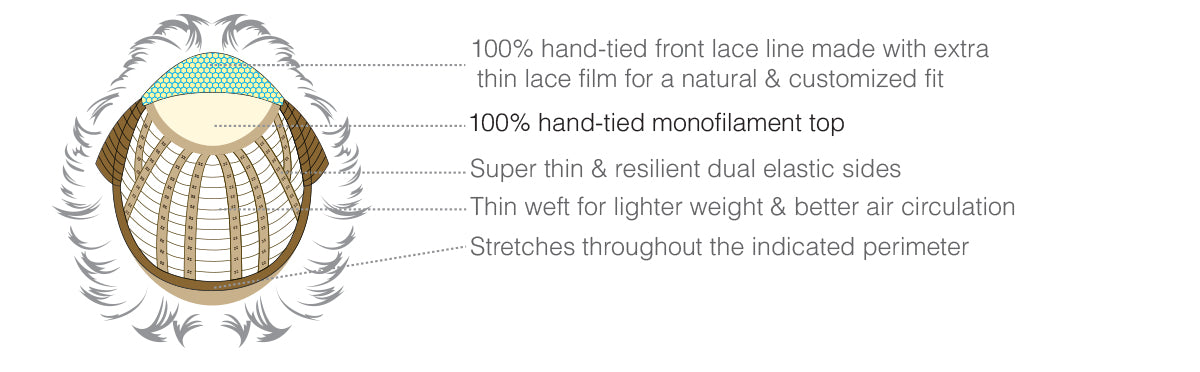 • Full Monofilament Top / Extended Lace Front / Open Wefted Back