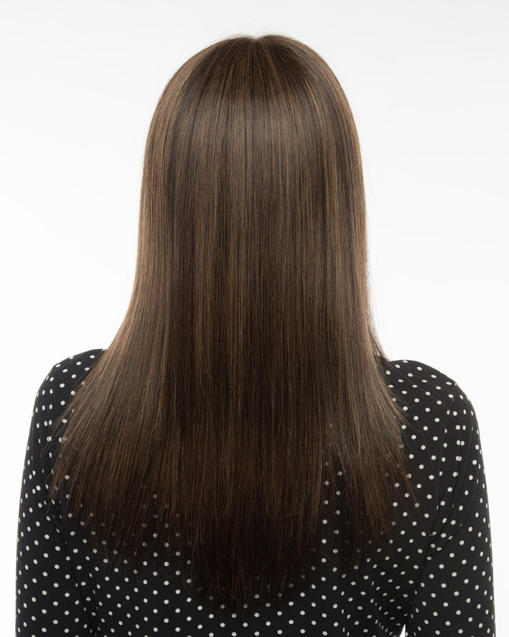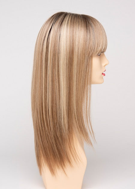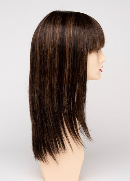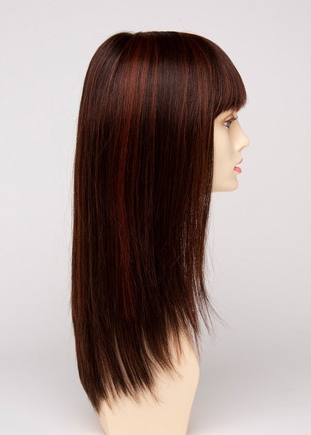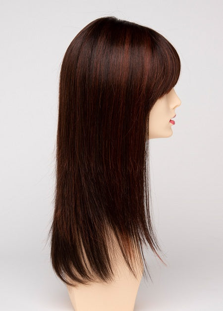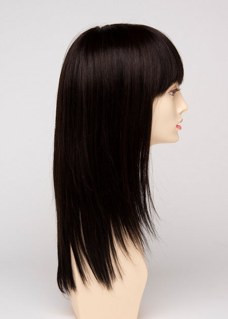 Taryn by Envy Wigs is a long, layered style with sleek, straight strands and soft, face-framing bangs. The monofilament top offers natural parting and a realistic look, while the human hair and heat-friendly fiber blend allows endless styling versatility for a timeless, polished finish.