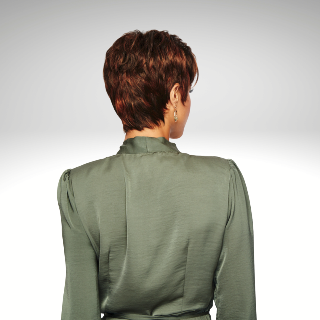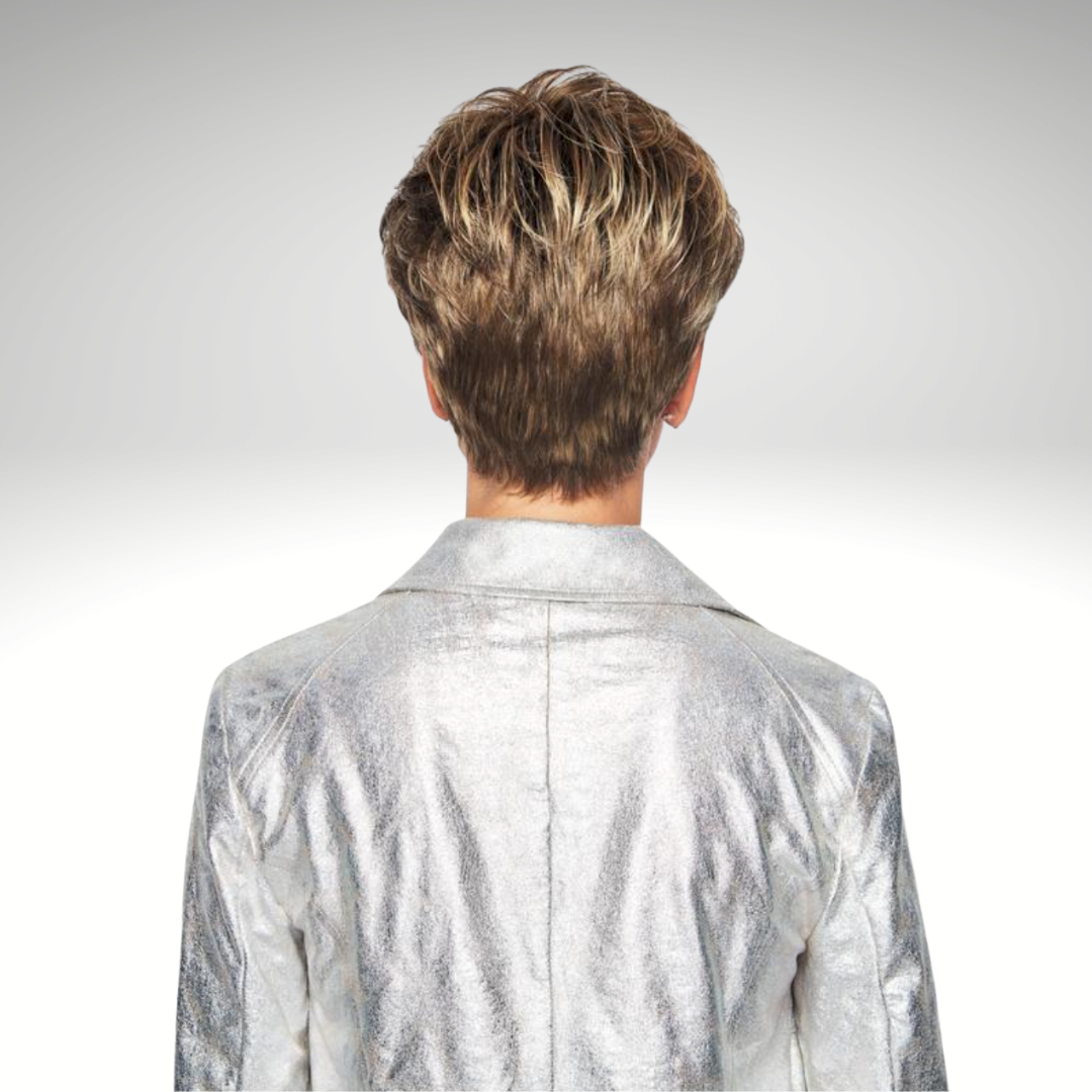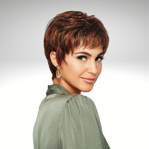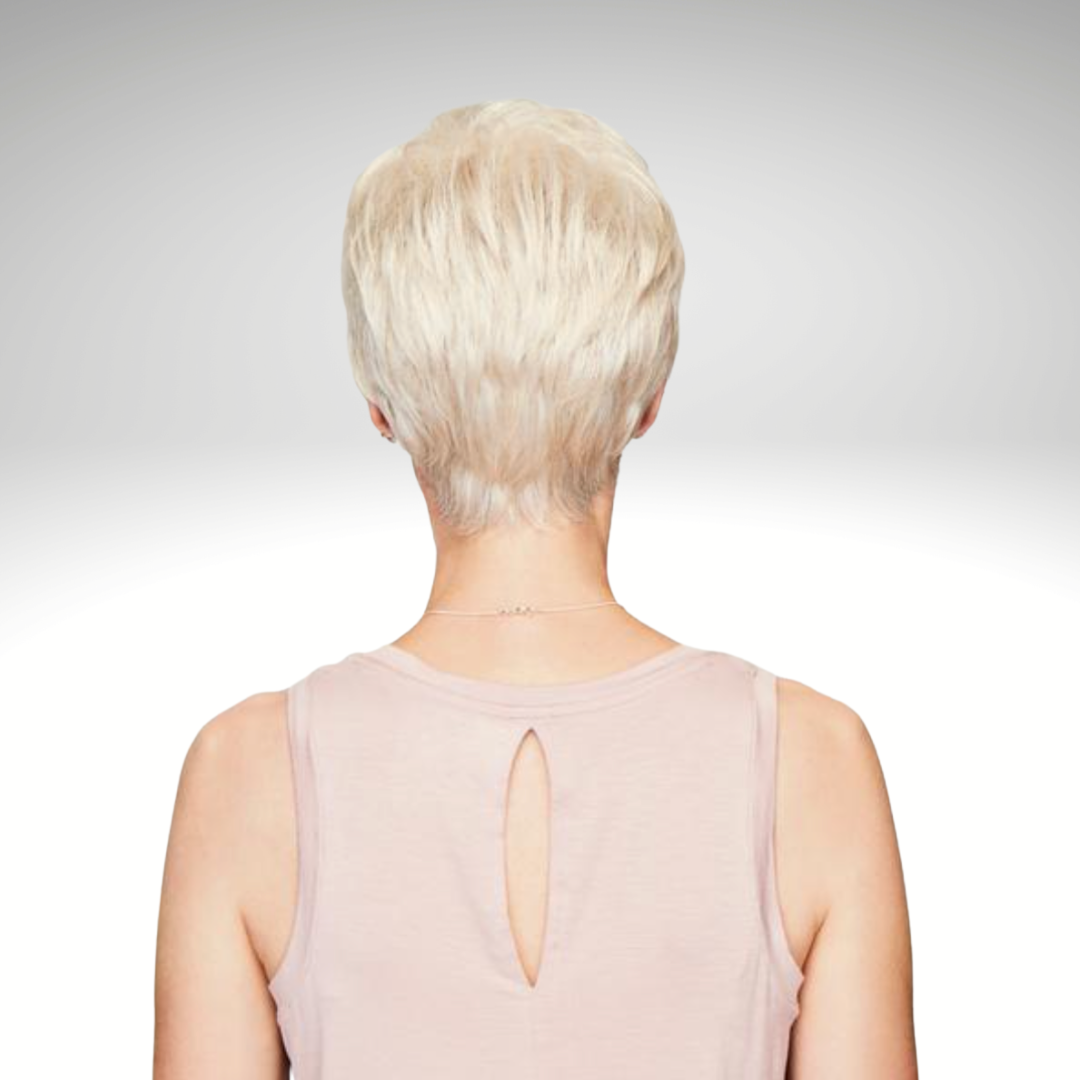 Only two ounces in weight, this light little pixie features razor-like tapering of barely waved layers. Ready-to-wear with a firm shake right out of the box, this short boy cut is as easy to style as it is comfortable to wear!